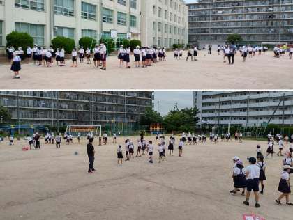 高学年が低学年をうまくリードして、みんなとびっきりの笑顔でした。1年生を教室まで送り届けるなど、最後まで6年生が頑張っていました。