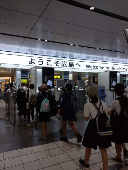 広島に着きました。バスに乗り換えました。袋町小学校へ向かいます。