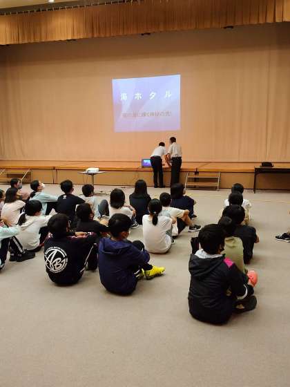 夕食を終えて、今から海ホタルの見学に行きます。見学前に、海ホタルについて学びました。大きさな3ミリメートルほどだそうです。