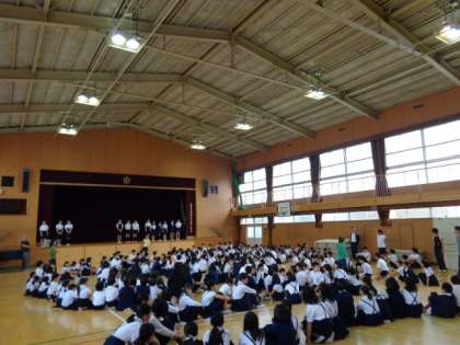 舞台の上の集会委員も、はじめての司会で、ちょっと緊張した面持ちでしたが、しっかりとお話をしていました。