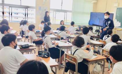 大和大学と追手門学院大学、関西外国語大学から7名の大学生が来られています。学びサポーターやボランティアとして、子どもたちの学習支援や学校生活の支援をしていただいています。
