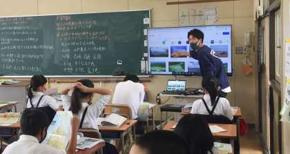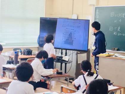 ICTを活用した授業をしています。4年生の算数と5年生の社会の授業場面です。
