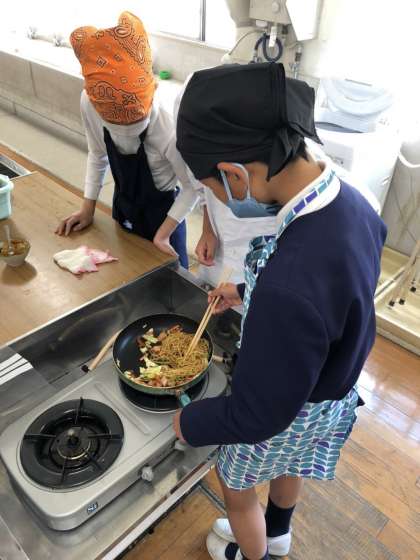 6年家庭科で調理実習をしました。