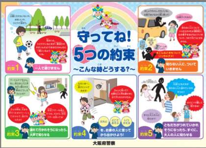 「守ってね!5つの約束」のPDF版です。→https://swa.city-osaka.ed.jp/weblog/system/files/e641405/doc/217692/4311327.pdf