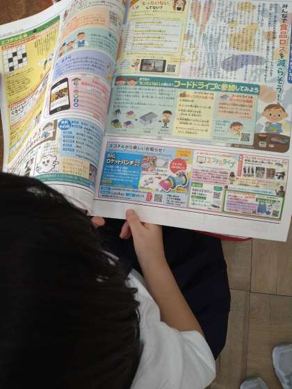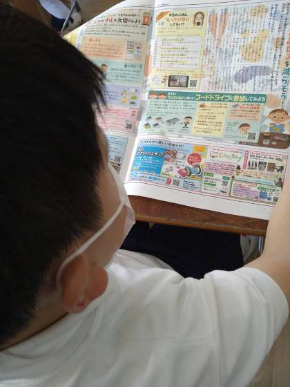 3年生が、「エコチル」の『食品ロス』の記事を読んで、学習していました。