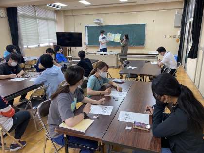 子どもたちに英語の授業の初めに行うSmalltalkの練習をしました。週末の出来事を英語で交流しました。