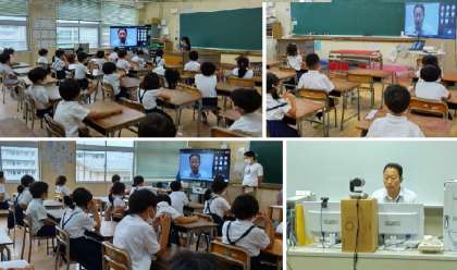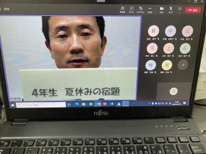 今学期の終業式は、コロナ感染症予防の為に、オンラインで行いました。生活指導の先生から、安全にすごすために大切なことのお話を聞きました。