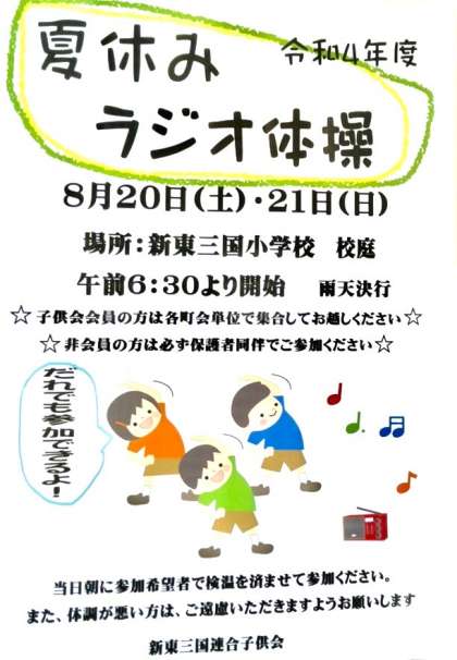 【地域からのお知らせ】8月20日(土)夏休みラジオ体操