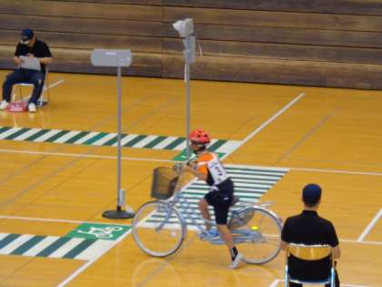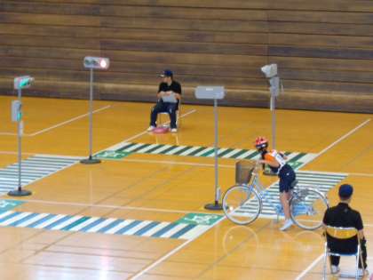 応援の声があちこちから飛び交います。そんな中を、走行前の後方確認や停止の合図、右折や左折の合図など、練習したことを思い出しながら、慎重に走行していました。
