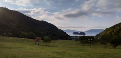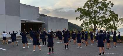 海の見える、見晴らしのいい場所で「朝の会」を行いました。
