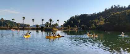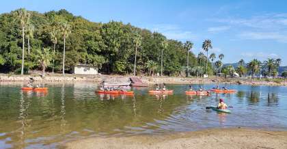 前半は1組がシーカヤック、2組はクラス・レクリエーションです。