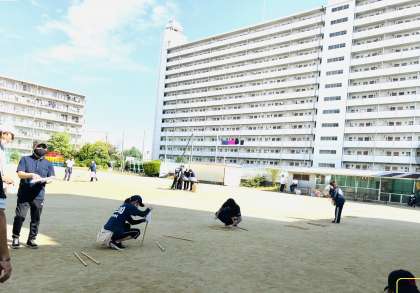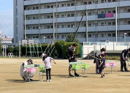 「ビンつりじゃなくて おかしつり」が始まりました。コロナ感染症対策として、手とさおの消毒をしています。