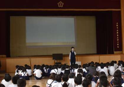 淀川警察の生活安全課の方にお越しいただき、全学年に向けて防犯教室を開催しました。