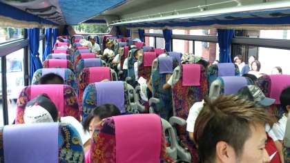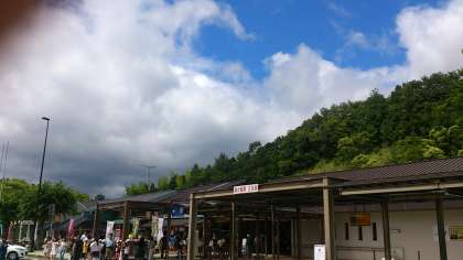 10時15分に西紀サービスエリア、11時10分にまほろばに到着しました。雲がいっぱいで、涼しく感じます。バスの中は元気いっぱいで、食べ物しりとりで盛りあがっています。もうすぐ、目的地神鍋高原に到着します。