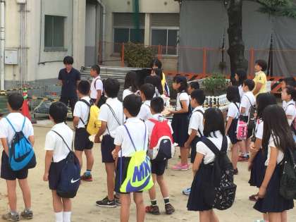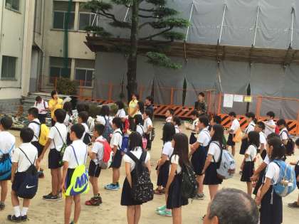 学校に到着したら、お出迎え来てくださったお家の人に大きな声で「ただいま」とあいさつ。出発するときより成長した顔つきに変わっていました。校長先生や学年の先生から、たくさんのお褒めのお言葉をいただきました。