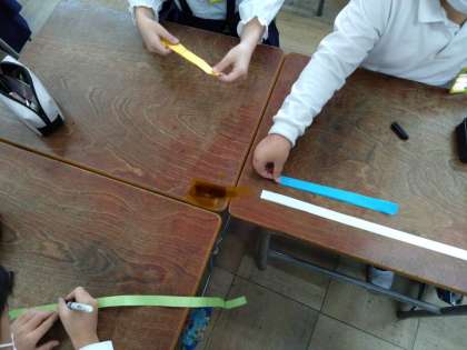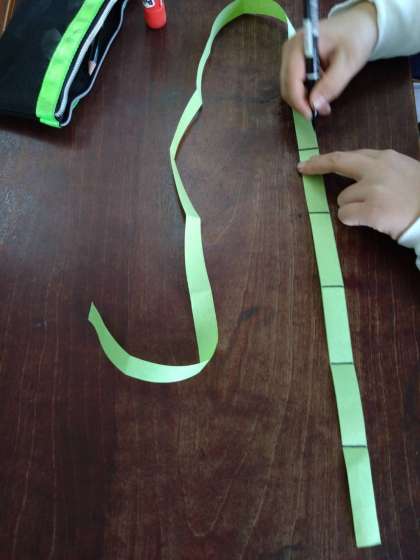 分数の学習で、実際に1メートルを色々な数で等分してみました。