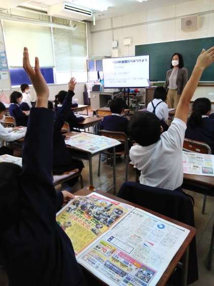 読売新聞社の方から、実際に新聞を使い、活用方法について学びました。
