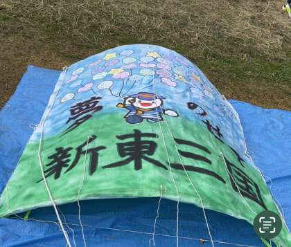 6年生一人ひとりの夢をのせた新東三国地域連合子供会の大凧です。大凧のたこあげ大会が行われます。