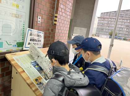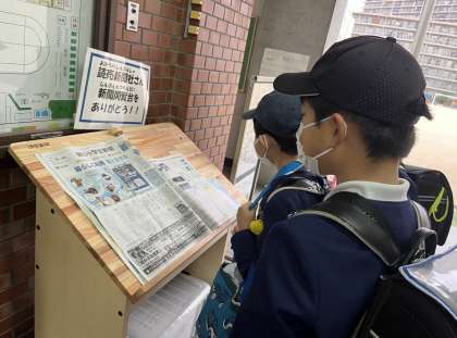 朝一番に小学生新聞を閲覧している児童です。今日はどんな記事なのか、興味を持って読んでいました。今日の朝日小学生新聞の一面記事は、「暮らしに利用 雪と生きる」でした。