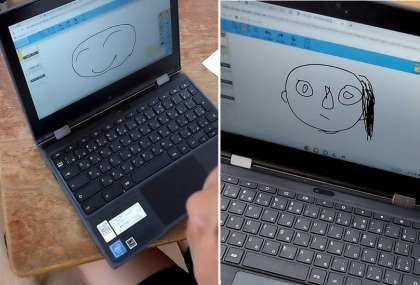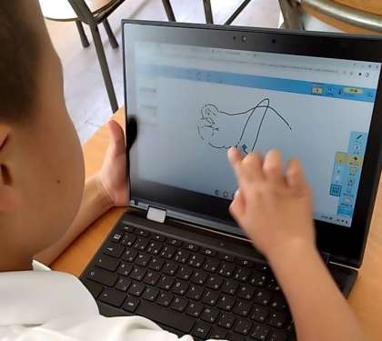 2年生がタブレット端末を使って、お絵描きをしました。