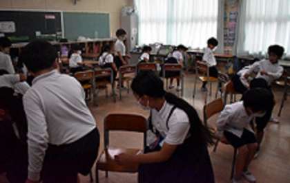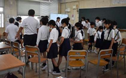 今朝の児童集会は、たてわり班に分かれての「いす取りゲーム」でした。雨の日でも、みんなで楽しく遊べるよう、集会委員会の子どもたちが計画してくれました。