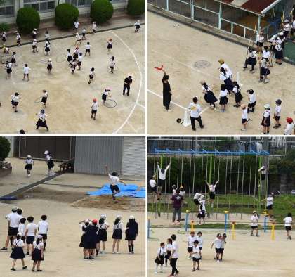 1日目の今日、フラフープや竹馬、50m走、走りはばとびやのぼり棒などなど、みんな思い思いの運動で汗を流していました。