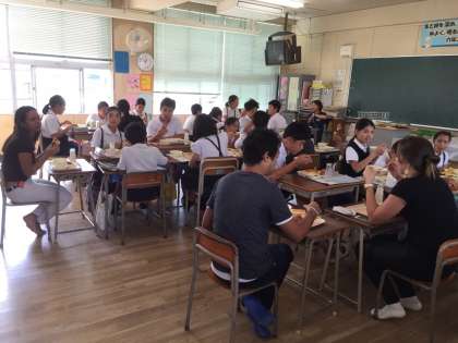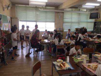 10月8日(木)にブラジルの会社の方々が、日本の小学校の給食と掃除の様子を見学したい、と通訳の方を含め、7名の方が来校されました。子どもたちの給食の準備・後片付け、「いただきます」・「ごちそうさま」のあいさつ、一生懸命掃除に取り組む様子をご覧になり、「すばらしい!」と感激されてました。「ブラジルに戻ったら今日のことを紹介します」と仰ってました。