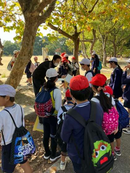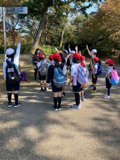 秋晴れのさわやかな天気のもと、オリエンテーリングを楽しんでいます。