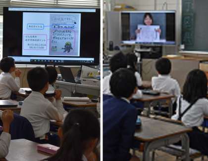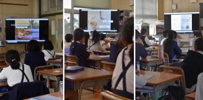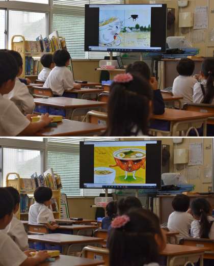 読書ノートの表彰や、絵本の読み聞かせなどがあり、子どもたちはみんな熱心に画面を見ていました。