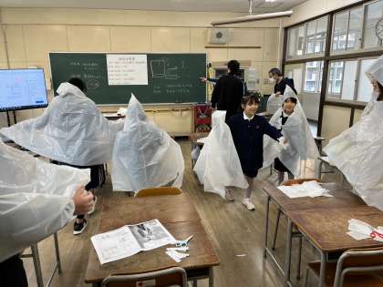 本日、新東三国小学校では、地域の方々と一緒に地域合同防災訓練を実施しました。