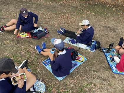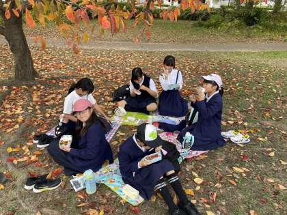 自分たちで作ったお弁当&お弁当包みでランチタイムです!