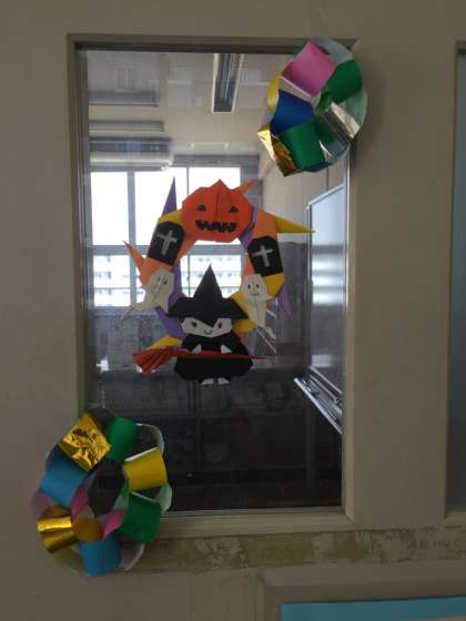 10月15日(木)から、図書室の本の管理などしてくださる学校図書館補助員さんが来られています。ハロウィーンの時期なので、扉に写真のようなかわいい装飾をしてくださいました。図書室に行ったときにぜひ見てください。補助員さんとは毎週木曜日にお会いすることができますよ。
