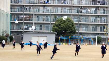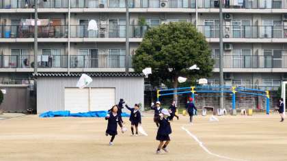 自分たちで作ったたこが空高く舞い上がりました。みんな笑顔いっぱいです。