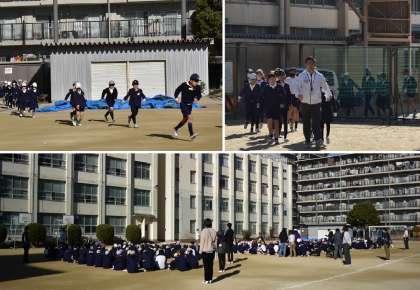 学校では、2時間目に「地震」と「津波」を想定した避難訓練を行いました。