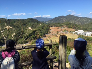 尾根づたいにとなりの山へ。見下ろすと、みんなが遊ぶ「こどもの国」が見え、思わず「ヤッホー」の声が出ました。