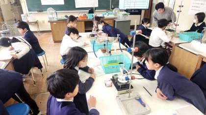 「水を熱し続けるとどうなるだろうか」というめあてのもと、水を熱する実験をグループで行い、水の様子を2分ごとに記録しました。予想通りの結果になったでしょうか?