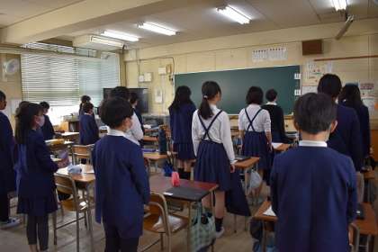この震災により犠牲となられたすべての方々に対し哀悼の意を表すべく、地震発生時刻の午後2時46分に、各学年それぞれの場所で黙とうを行いました。