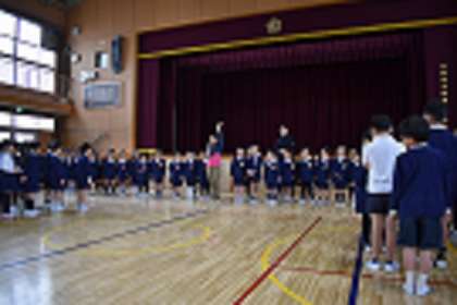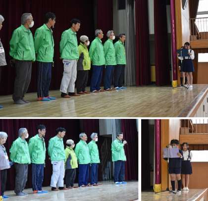 今朝は、6年生がみんなを代表してごあいさつしたあと、それぞれの代表の方にお話をしていただきました。新東三国小学校は、たくさんの地域の方々に支えられています。