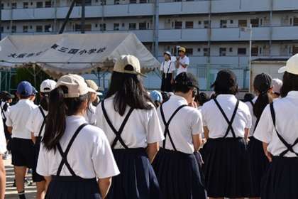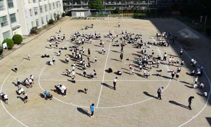 運動委員会のよびかけで、全校児童で運動場の石拾いをしました。
