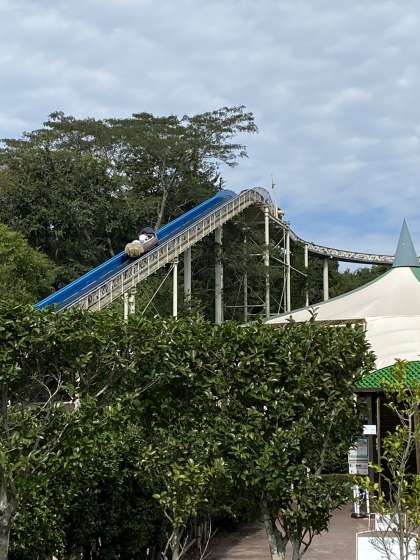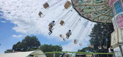 友だちといろいろな乗り物やコーナーを回って、楽しんでいます。