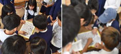 今朝は、全校遠足に向けてのたてわり班活動でした。