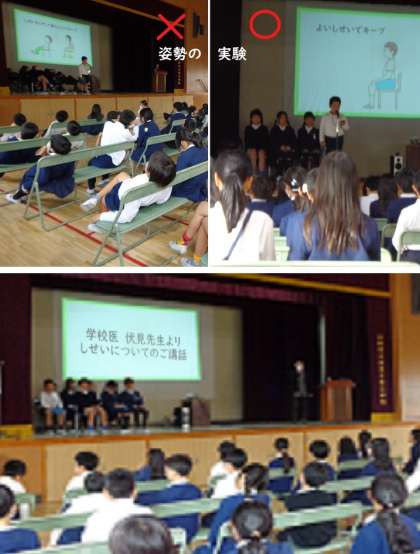 内科校医の伏見先生を講師にお迎えし、「よいしせいを身につけよう!」をテーマに、学校保健委員会を行いました。