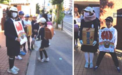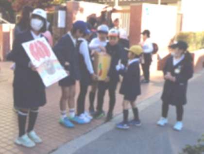 玄関では、たくさんの子どもたちが募金に協力してくれました。(子どもたちに交じって大人の姿も…)