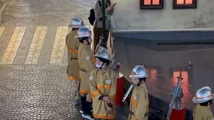 消防士の体験をしています。