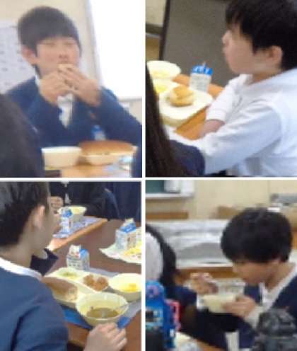6年生はみんな、あげどりやカレースープを美味しそうにほおばっていました。いつもよりおかわりをする子どもたちもいっぱい。デザートのフルーツゼリーまで完食でした。