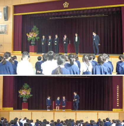 1学期の「始業式」の前に、この春の異動で、新しく新東三国小学校に赴任した教職員の「着任式」を行いました。
