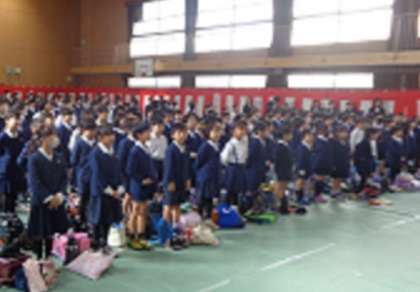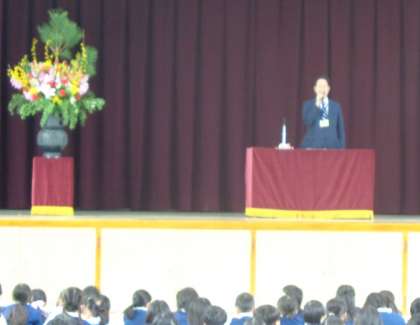 式の最後にみんなで校歌を歌ったあと、担任の先生と新しい教室へ!