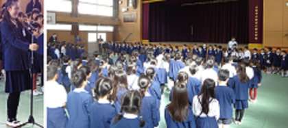 校長先生のお話のあと、6年生の児童がみんなを代表して、歓迎の言葉を述べました。