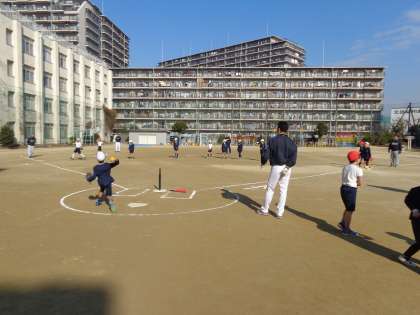 前回の2年生に続いて、オリックス・バッファローズの方々が4年生のために来てくださいました。今日は、2時間目に2組、3時間目に1組と分かれてご指導してくださいました。そして、6時間目には1組VS2組で試合をしました。みんな、とてもいい表情をしていました。2月には3年生の指導に来てくださいます。
