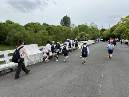 5・6年混合のたてわり班で、仲よく協力して、各ポイントを回っています。